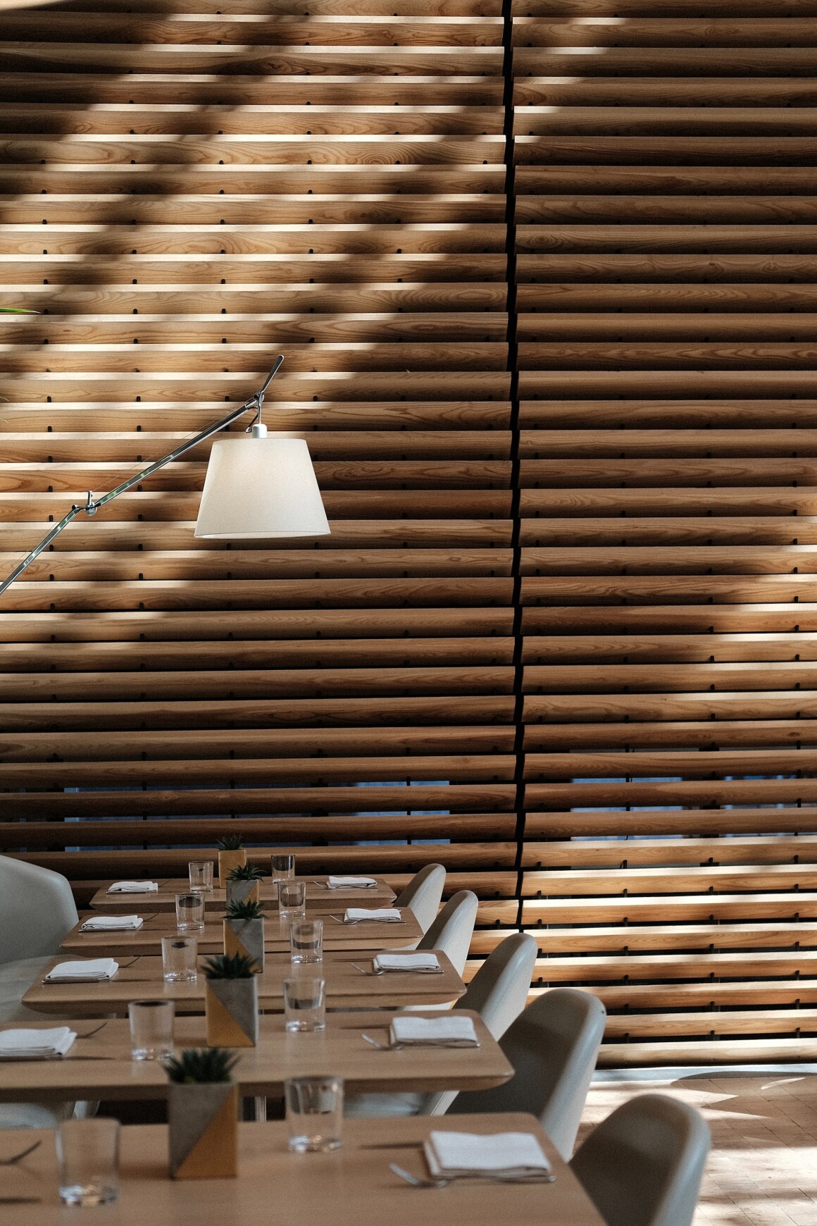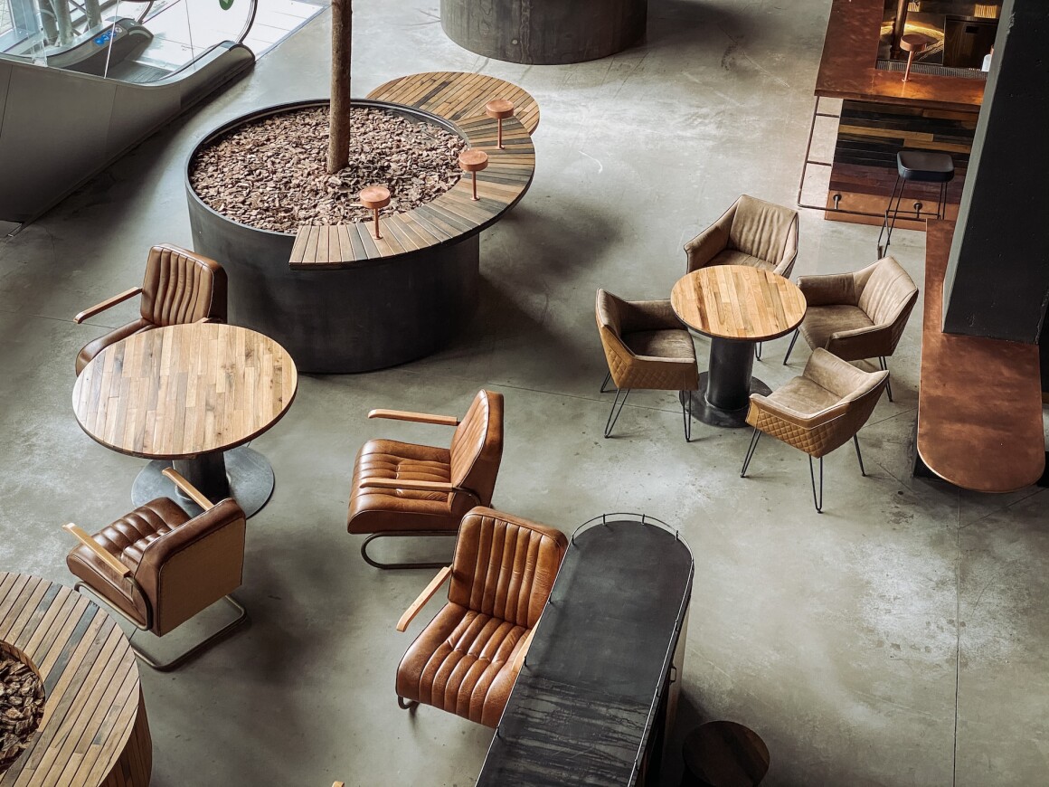 Кожа, камень, дерево, чеканка металла и немного войлока в интерьере — аутентичный дизайн и привлекающее внимание исполнение. Чего стоит крафтовая люстра над посадочной зоной — место притяжения всех гостей и посетителей.